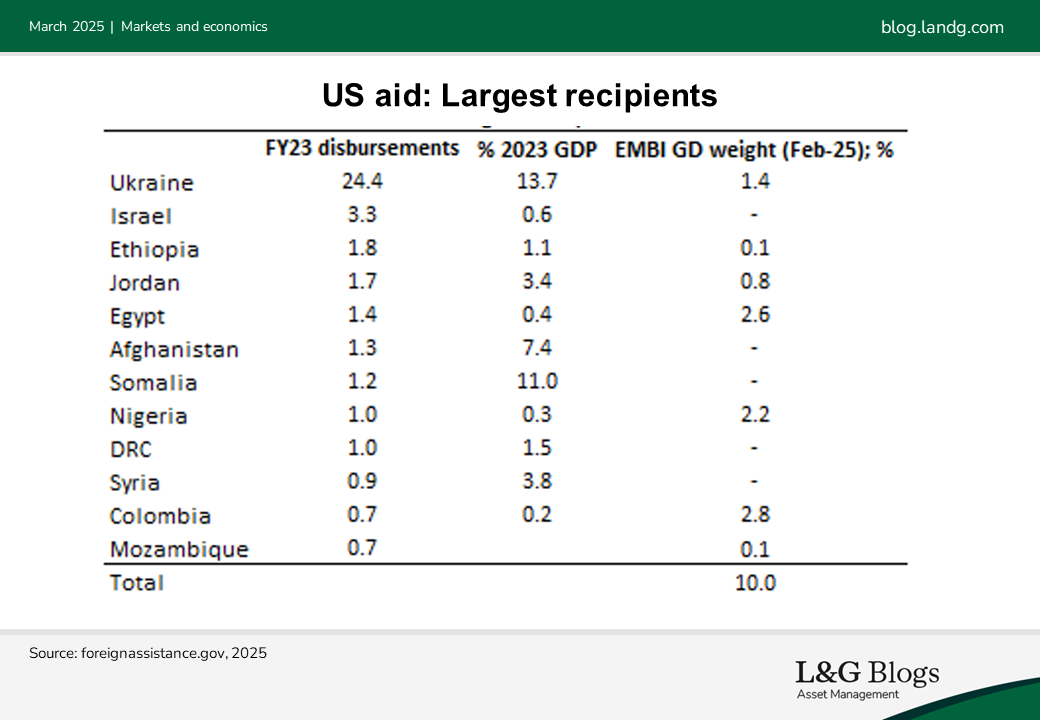 A second source of vulnerability for emerging markets arises from the US’s mooted suspension of bilateral aid. The US is among the largest sources of aid, channelling some $80 billion in 2023 to emerging markets via various agencies and programmes[1].
