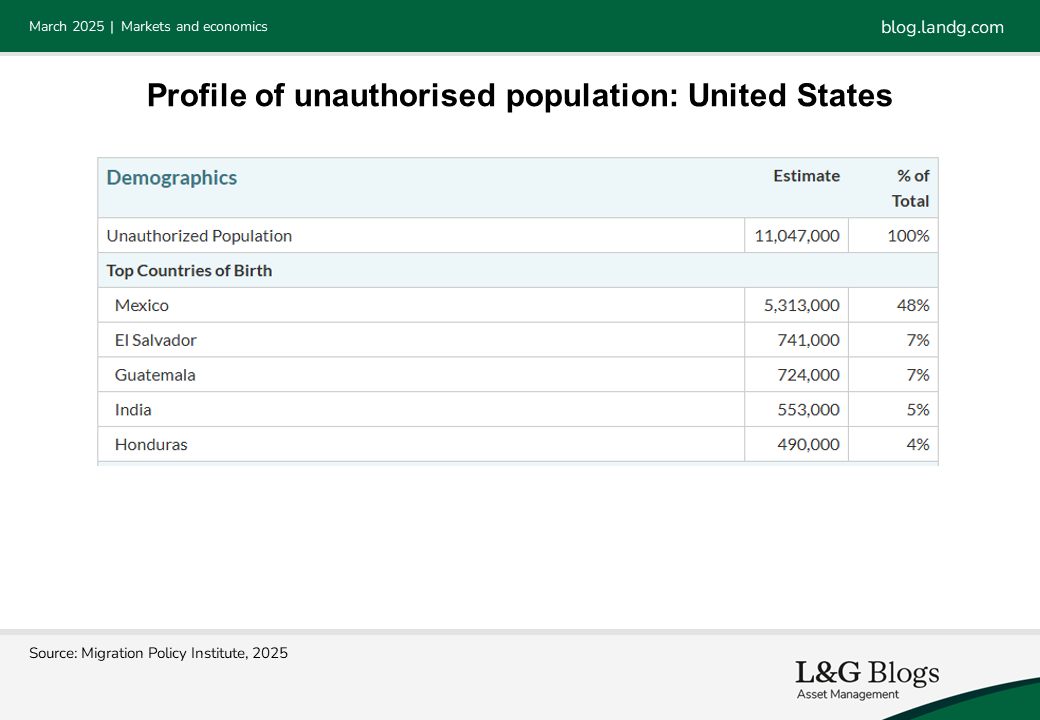 EM external financing needs could also rise in some emerging markets thanks to plans to deport as many as 11 million undocumented migrants from the US. Data from the Migration Policy Institute presented in the table below suggests a heavy skew to Mexico within the unauthorised population.