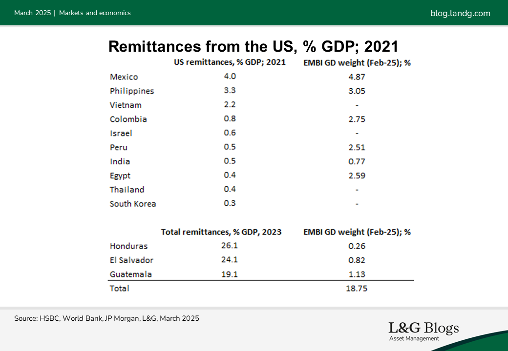 Although there are significant uncertainties (including logistical and potentially legal challenges), should the Trump administration be successful in executing its deportation policies, some of the countries below could see lower remittances, and – all else being equal – larger external financing needs.