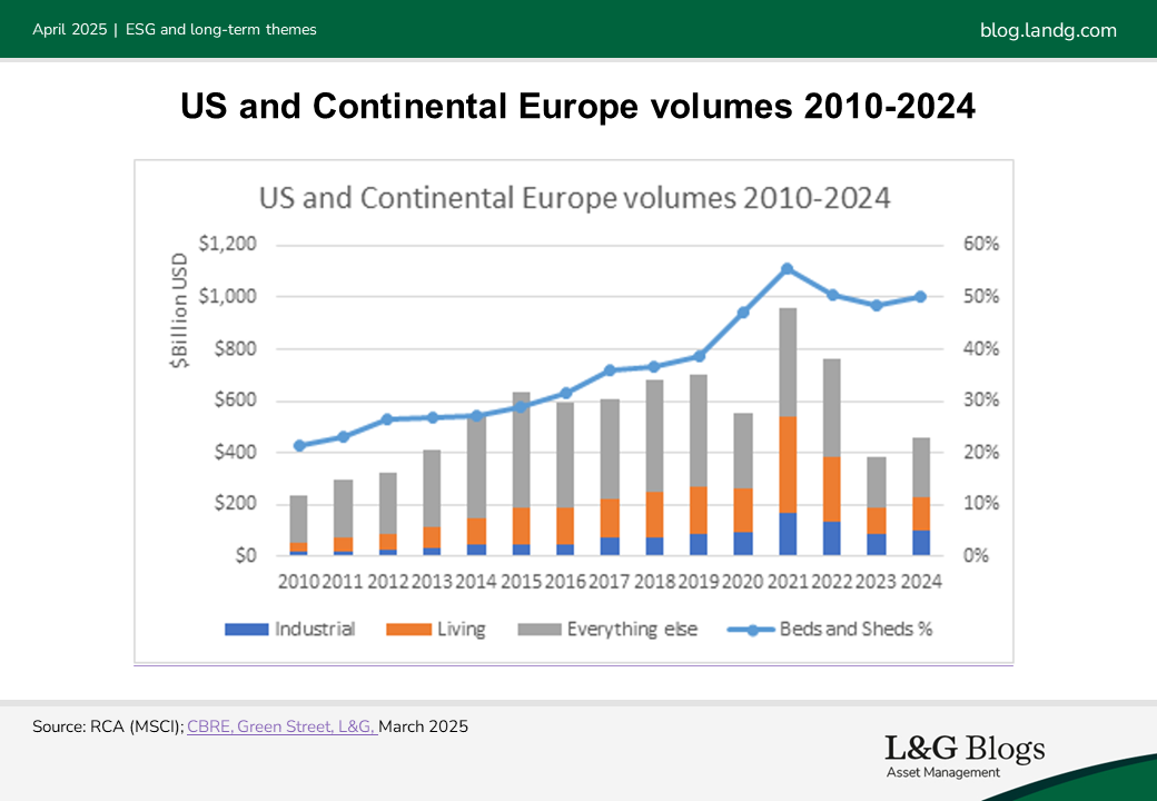 The global real estate market has been dominated by a strong narrative around ‘beds and sheds.’ This means living-related real estate across various strategies, and buildings supporting distribution and manufacturing activity.