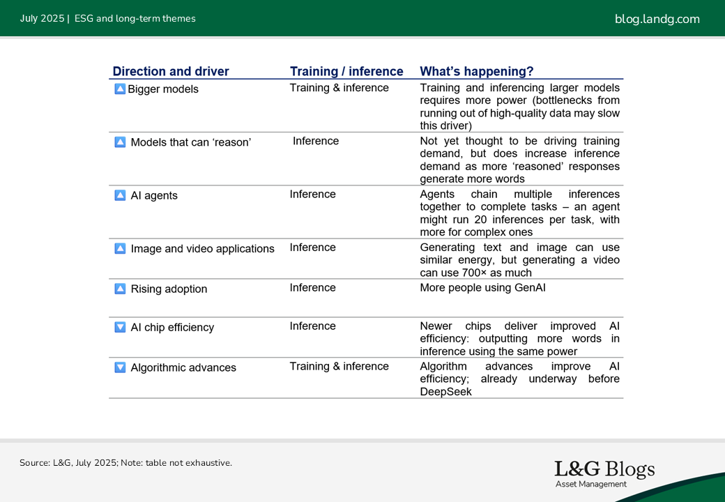 GenAI has seen upward drivers that increase data centre power demand, and downward drivers that reduce it. Despite rapid innovation creating uncertainty in forecasts, indicators suggest we should see continued growth in the medium term.[1]